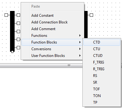 A context sensitive menu is displayed. - Select the Function Blocks option to display another menu.