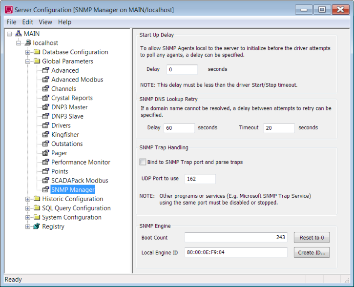 - In the Global Parameters hierarchy, select the SNMP Manager entry.