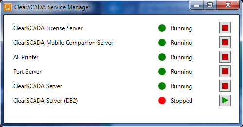 - In Windows, run the ClearSCADA Service Manager (it is available from your list of Programs via the Start menu).