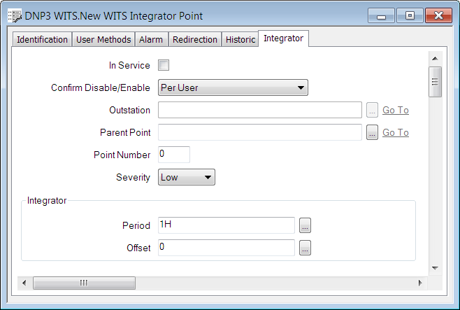 To configure a WITS Integrator Point database item, you use the WITS Integrator Point Form.