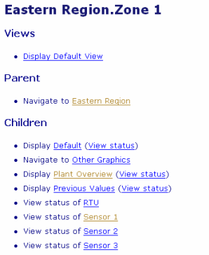 - If a Group or Group Instance is configured to have an Alarm View, select the Display Alarm View hyperlink in order to display that view. This hyperlink is equivalent to the Display Alarm View option or pick action (see Display Alarm View).