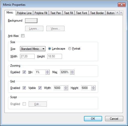 - Use the Mimic Properties window to define the settings that will apply to every Mimic that is configured for the first time on your client PC. For more information on the settings on the Mimic Properties window, see Mimic Properties Window.