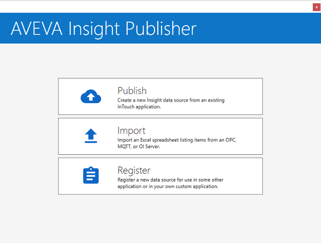 2. Select Register as you are using Geo SCADA Expert and therefore require a connection token to help secure the communications between Geo SCADA Expert and AVEVA Insight. (The other options are for other applications, such as InTouch.)