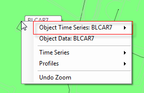Another context-sensitive menu, listing all the available Time Series for the selected object is displayed.