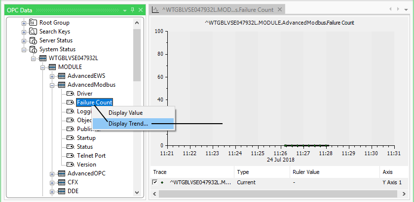 NOTE: Geo SCADA Expert supports several types of Trend. The type of Trend that you can display using the OPC Data Bar is a ‘standard’ Ad Hoc Trend (see Pre-Configured Trends and Ad Hoc Trends).