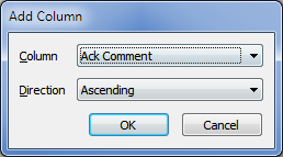 - Use the Direction combo box to specify the direction in which you want to sort that column—either Ascending or Descending.