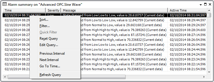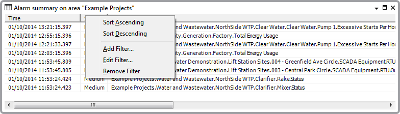 With Lists other than Alarms Lists, you can also specify the sort order by directly modifying the SQL query’s ORDER BY clause (see Ascertain which SQL Query is Presently used by a List).