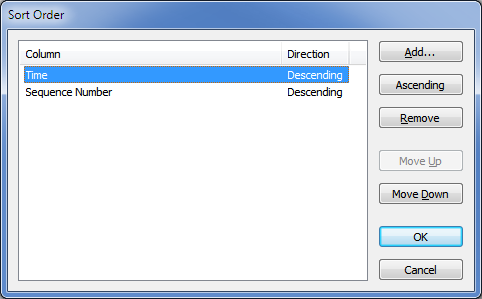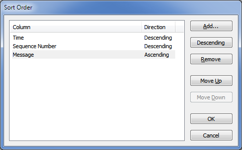 - If required, select the Move Up or Move Down buttons to change the order in which the columns are sorted.