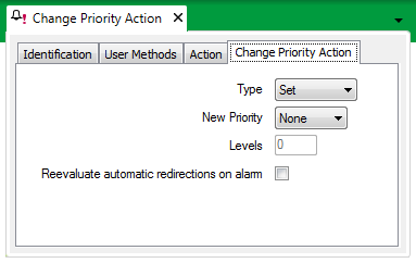 - You can optionally use a Change Priority Action to re-evaluate each of the redirection actions that apply to, and are configured to trigger automatically for, a particular alarm.