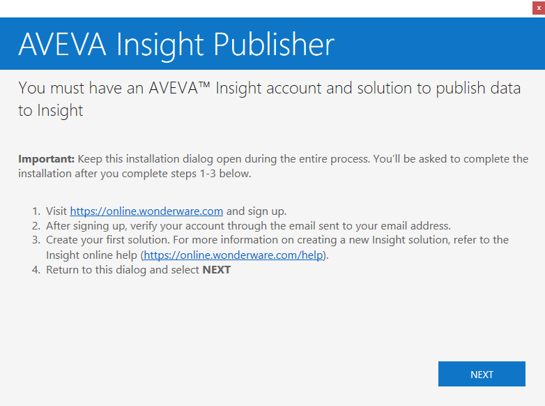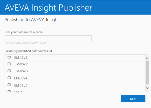 - You will be given the option of either using your existing Insight account to publish data, or creating a new Insight account for the user that is to publish (export) data to AVEVA Insight.