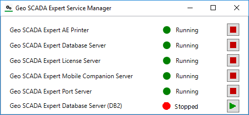 The server icon that runs near the clock on the Windows taskbar will also change color to indicate that the Geo SCADA Expert server has stopped running: