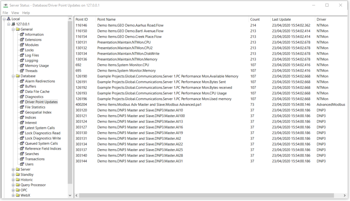 When managing a Geo SCADA Expert system, one of the challenges is to make sure that overall point data processing activity levels are under control. This is important because the level of activity directly affects database locking, which can lead to performance issues if points are being updated too frequently.