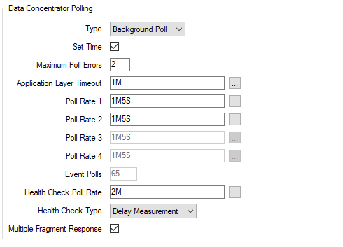Use the Poll Rate n fields below to specify that rate at which the data concentrator requests each type of data.