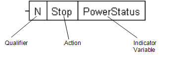 You can use an indicator variable to display the name(s) of the direct or internal variables that are affected by an action. This is useful as it allows operators to see which variables are affected by each action. For example, if a Stop action affects the state of a 'PowerStatus' variable, an indicator variable could be used to show 'PowerStatus' next to the Stop action on the SFC.
