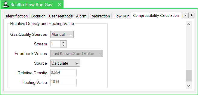 - Source—If using this field with Realflo version 6.82 onwards, it will only be available for use if Gas Quality Sources is set to Manual. Select one of the following: