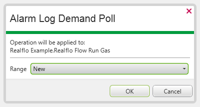 - Select the Alarm Log Demand Poll pick action to display the Alarm Log Demand Poll window.
