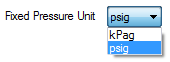 This combo box only applies when the Pressure Compensation is set to 'Fixed'. Use the combo box to select the units in which the Fixed Pressure value is entered.