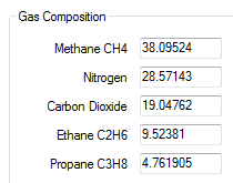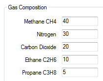 A Flow Run’s Gas Composition properties are configured as a percentage of the overall gas composition. They are configured to have the following values:
