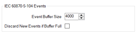 - IEC 60870-5-104 Events—Use the fields within the IEC 60870-5-104 Events section to define the event buffer settings.