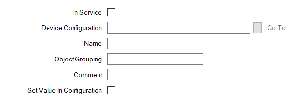 - In Service—Use to specify whether the Configuration item is 'In Service' and included in the downloaded/exported configuration (see The 'In Service' Check Box and Items Taken Out of Service).