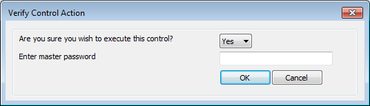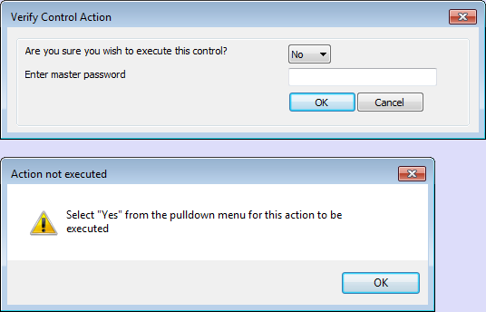 If the user selects the OK button on the Form and the Yes option has been selected, Geo SCADA Expert checks to see if the correct password has also been entered.