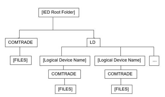 The IEC 61850 driver searches for the files in the COMTRADE directories, downloads the files, and creates the same directory structure as in the device.