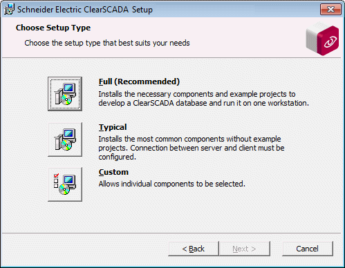 2. Run the Setup.exe file that was supplied by Schneider Electric. This Microsoft Installer file initiates the ClearSCADA installation and is downloaded or supplied on digital media when you purchase your system. For more information, please contact your system administrator.