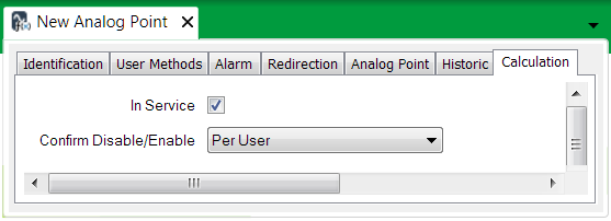 - In Service—Use to specify whether the point is active or inactive (see Placing an Item In Service in the ClearSCADA Guide to Core Configuration).