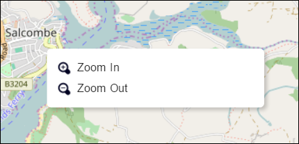 To zoom in and out on a specific location on the map, right-click on the location and ClearSCADA will display the Zoom menu: