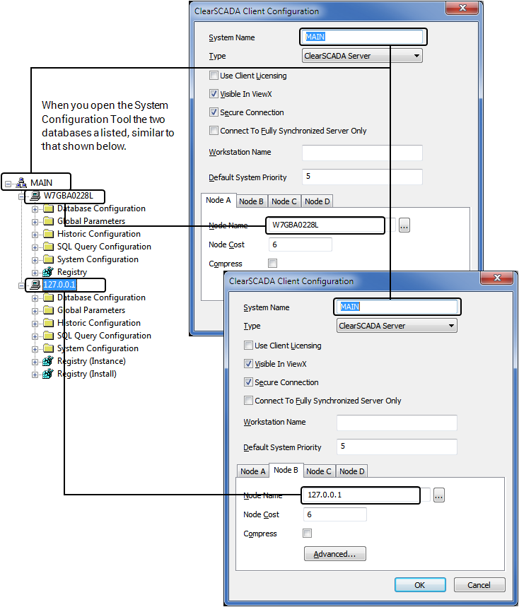 - Before you can access the second database using the ViewX client you need to configure a client connection, see Display the ClearSCADA Client Applet.