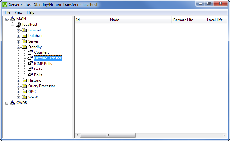 The Historic Transfer category provides detailed information about the transfer of historic data from the main server to the standby server(s) in a multi-server system. It is particularly useful for checking the type and amount of historic data that is being transferred. Systems that transfer large amounts of historic data may have slower performance and could possibly be reconfigured to store and transfer historic data more efficiently.