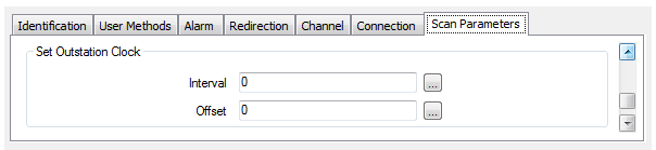 Use the Set Outstation Clock section on a Direct Channel Form’s Scan Parameters tab to define when the ClearSCADA server sets the outstation clocks. The ClearSCADA server uses the same interval and offset to set the outstation clocks on each of the outstations that communicate via a defined channel. This means that you can use different Set Clock times for each direct channel if required.