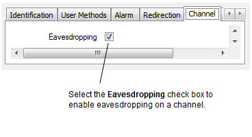 - Enable the eavesdropping feature for each of the communication channels. The Eavesdropping check boxes are on the Channel tabs of the various Channel Forms.