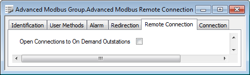 The Open Connections to On Demand Outstations check box allows you to specify whether this capability is enabled for applications attempting to send requests to outstations via a remote connection.