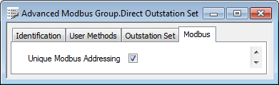 Select the check box if Unique Modbus Addressing is to be maintained for Modbus TCP controllers associated with the set. For example, if a Modbus TCP to Modbus RTU converter is being used.