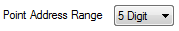 Use the Point Address Range field on the '<Driver Type>' tab to specify whether the points on a controller use a 5 Digit or 6 Digit address range. ClearSCADA performs configuration time-range checking on the controller’s points according to this property.