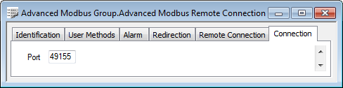 Use the Port field on the Connection tab to specify the TCP/IP port number that ClearSCADA uses to listen for commands from the application software.