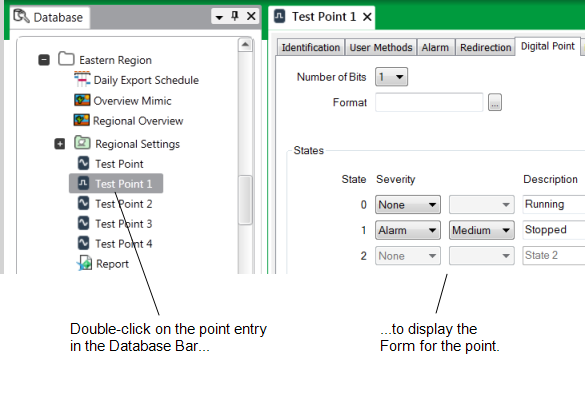 - Double-click on the point entry in the Database Bar (if you are logged on via a User Account that has the Double Click Edits Documents feature enabled).