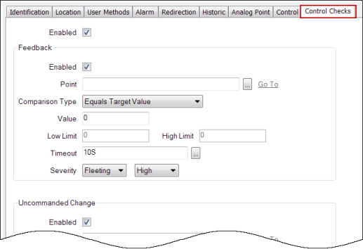 - We then select the Enabled tick box in the Uncommanded Change section of the Control Checks tab.