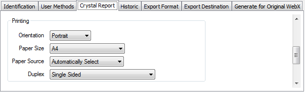 - Duplex—Use the combo box to specify whether the printed report is to be Single Sided, or printed doubled-sided (using Double Sided - Flip on Vertical Edge, or Double Sided - Flip on Horizontal Edge, as supported by your printer(s)). Alternatively, you can opt to use the printer’s Default duplex setting.