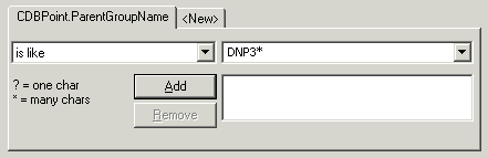 (The asterisk (*) indicates multiple further characters may be included in the name, so that the ParentGroupName fields that start with the word ‘DNP3’ are included in the selection.)