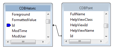 In a report that queries both the CDBHistoric and CDBPoint tables, you would choose to link the tables by Id.