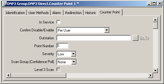 Use the fields at the top of the <Point Type> tab of the appropriate Point Form to define the general DNP3 settings for a point. Depending on the driver, some or all of these fields may be available. These fields are common to many DNP3 points: