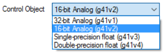 - Single-precision float (g41v3)—The control value of an analog output point is sent as a signed, IEEE single-precision (32-bit) floating point number with status (quality) flags.