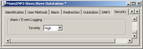 Use the field(s) within the Alarm/Event Logging section of the DNP3 Slave Outstation Form’s Security tab to define the priority that ClearSCADA assigns to the authentication and key change information that it logs for this Slave outstation.