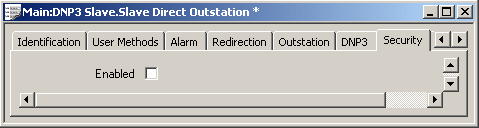 Use the Enabled check box at the top of a DNP3 Slave Outstation’s Security tab to specify whether the Slave outstation uses DNP3 Secure Authentication:
