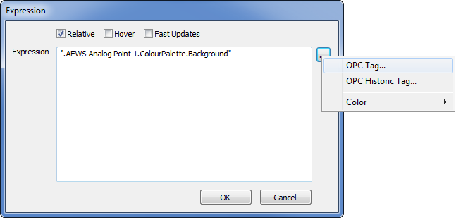 - Position the cursor at the place in the Expression field that the tag is to be inserted.