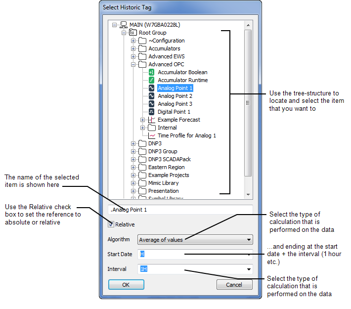 Selecting an OPC Historic Tag