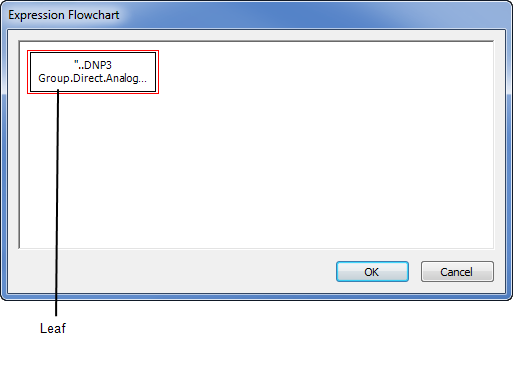 When you display a new Flowchart window, the flowchart contains a single leaf. Leaves are used to contain a result of an expression. Leaves are used with branches, where branches contain the condition of the expression.