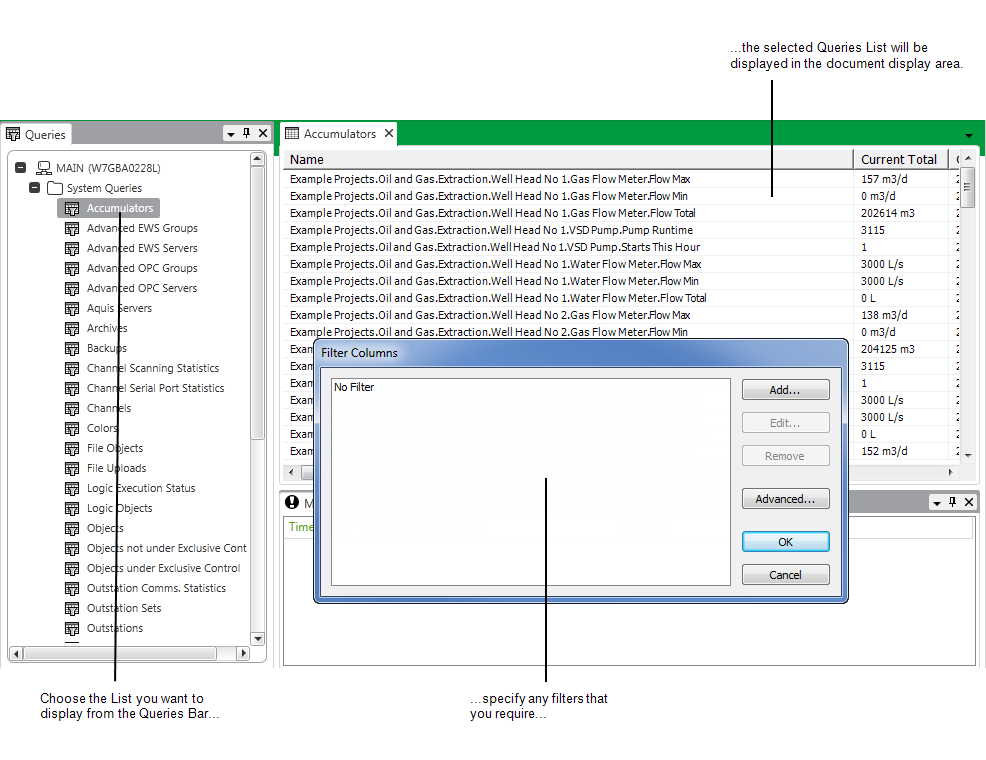 To display a List from the Queries Bar without first displaying the Filter Columns window, at step 3 above, either: